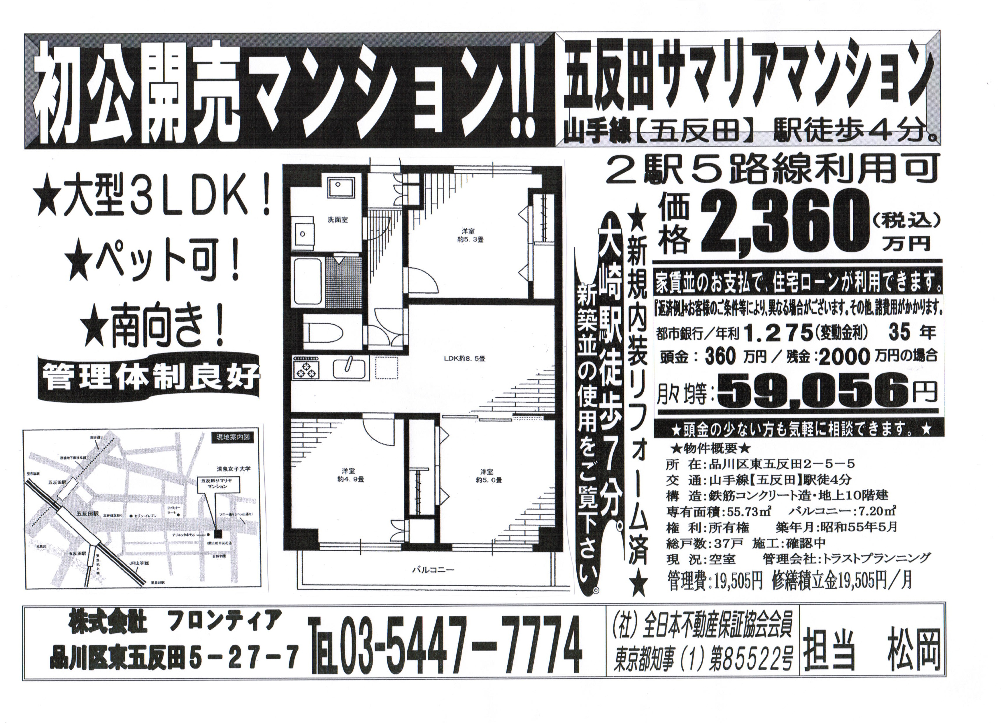 五反田中古マンションの不動産情報なら㈱フロンティアへ